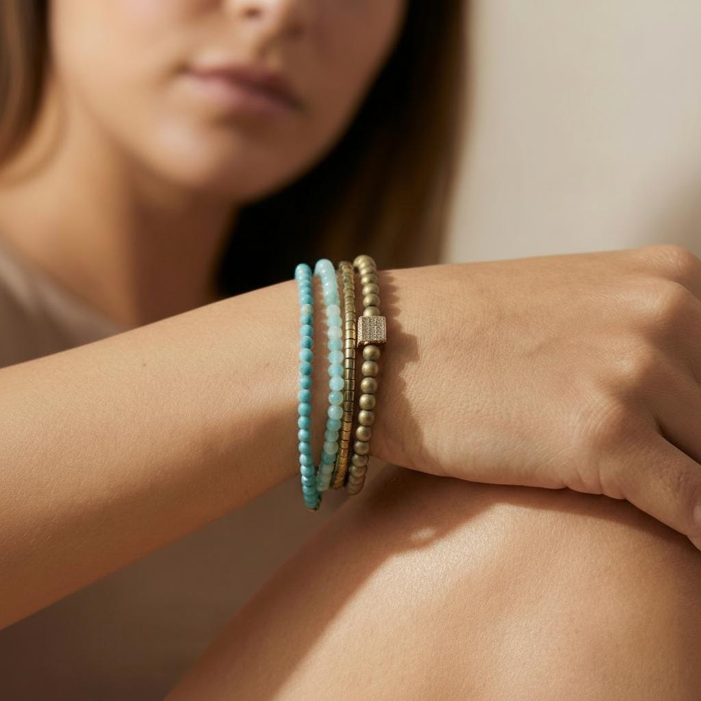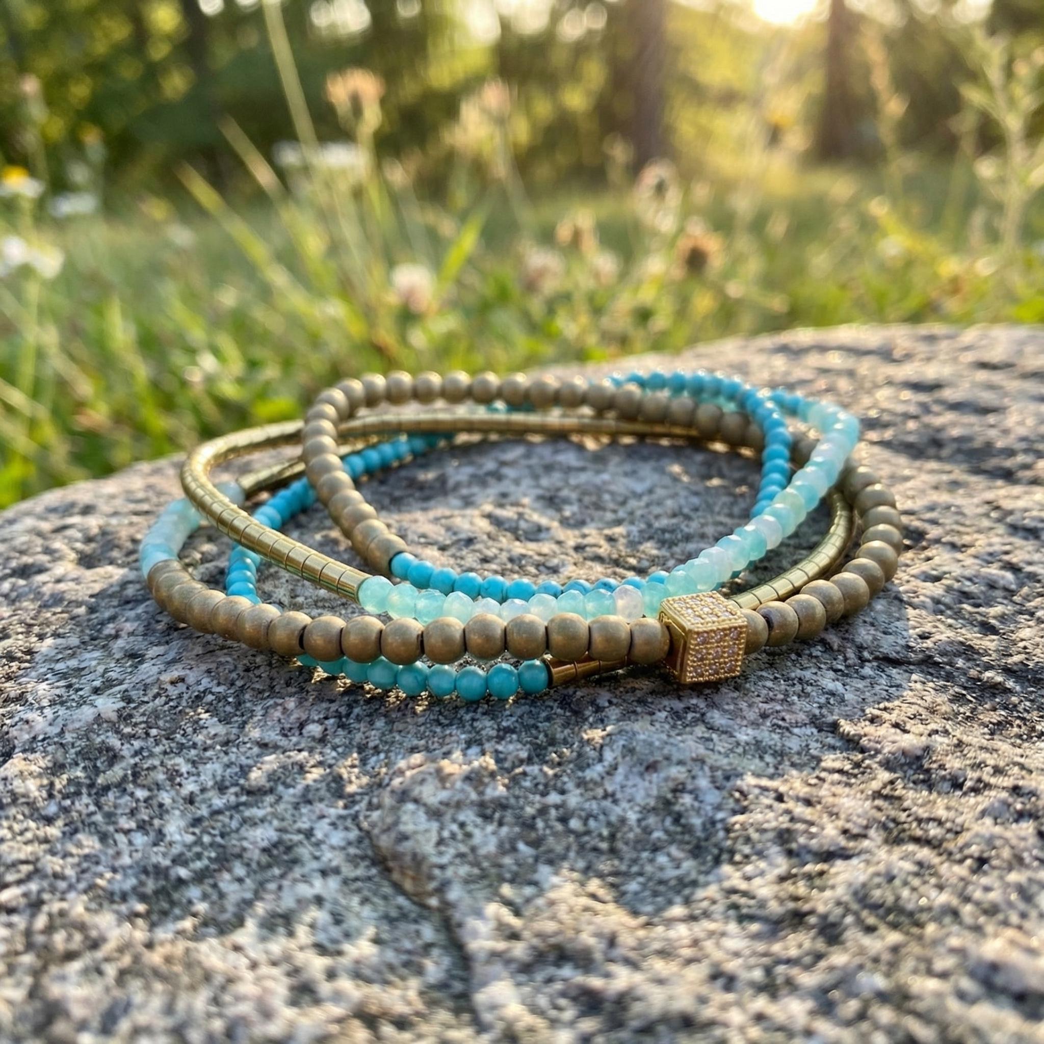 ✔️ Tiny 2–3 mm Amazonite, Turquoise & Hematite beads — lightweight and comfortable