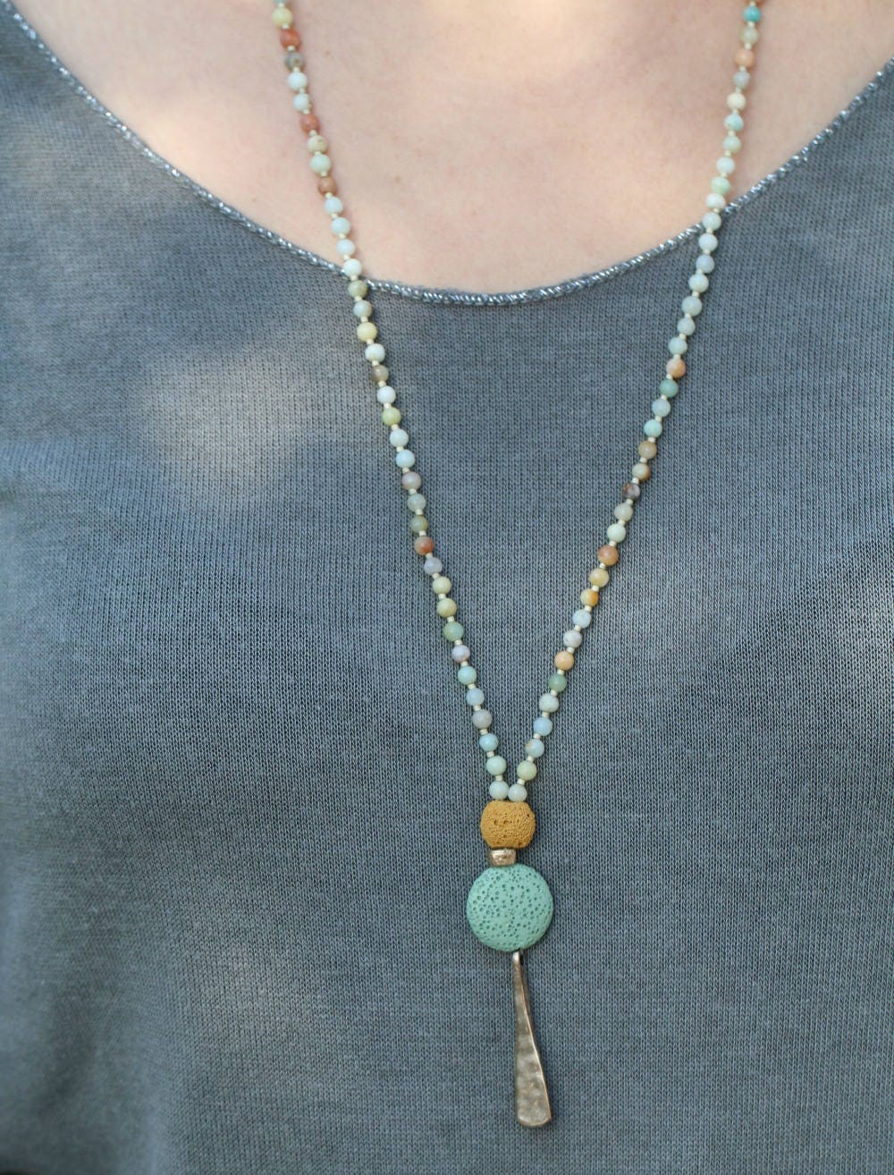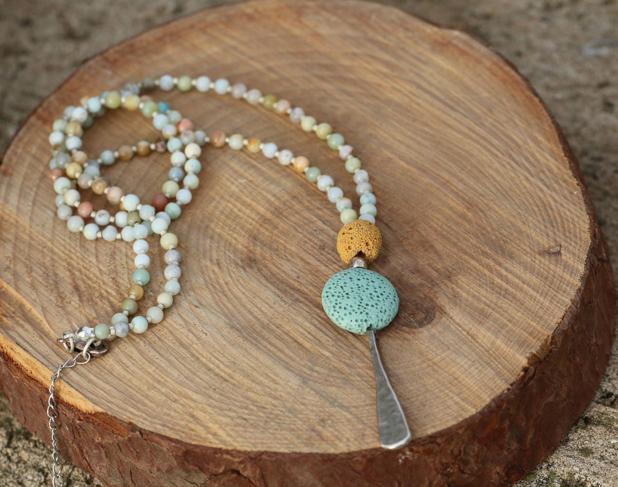 Materials: gemstone beads, silver plated pendant, amazonite beads, lava beads, stick pendant, round amazonite beads, gift for her, colorful necklace, lava bead, round beads, natural amazonite necklace, silver pendant, yoga necklace.