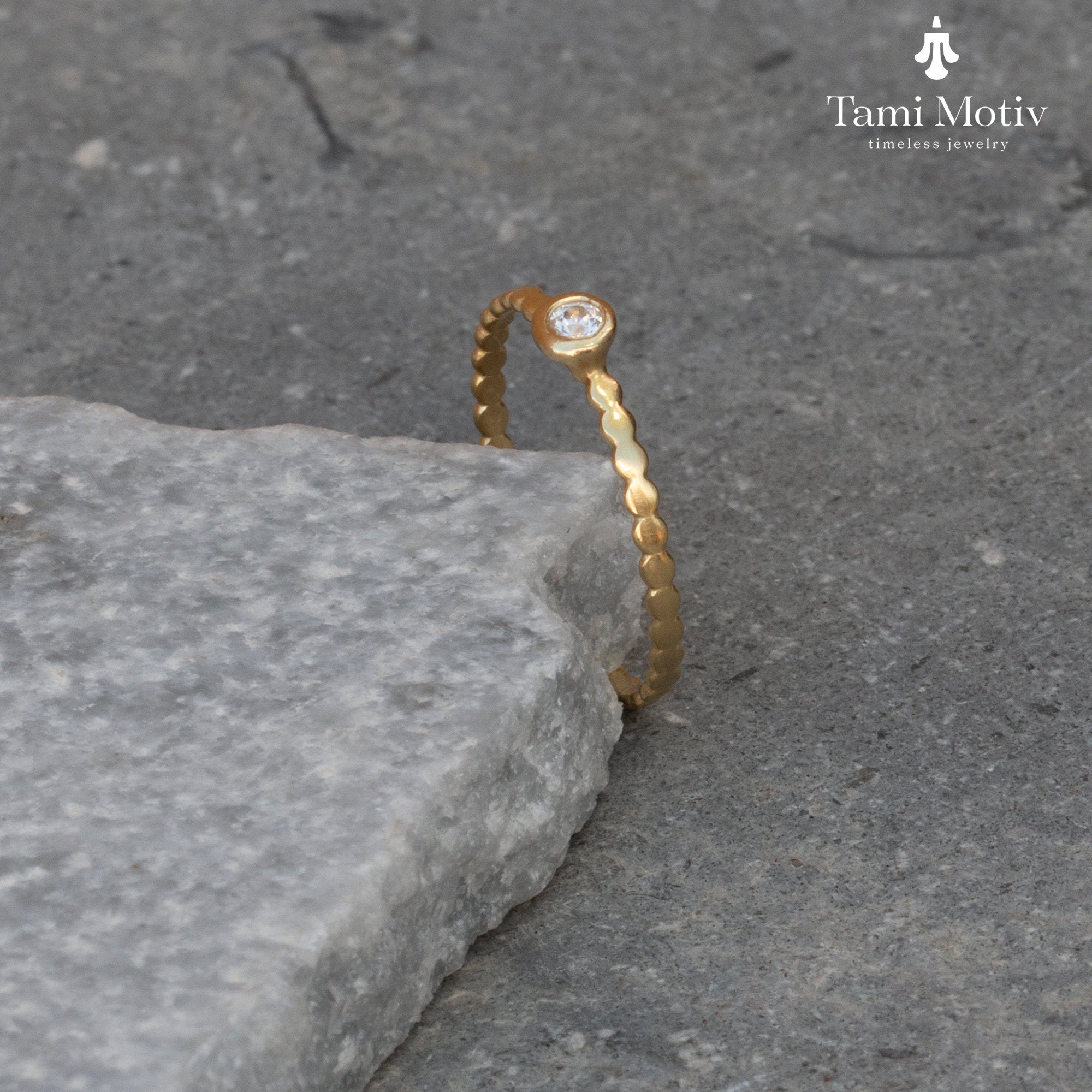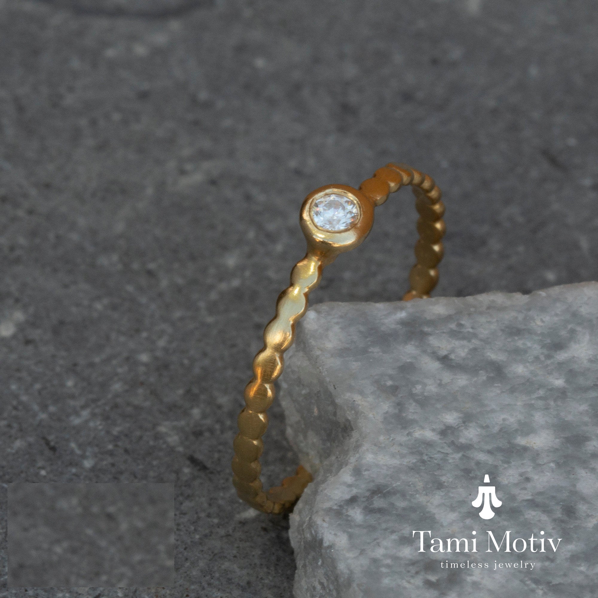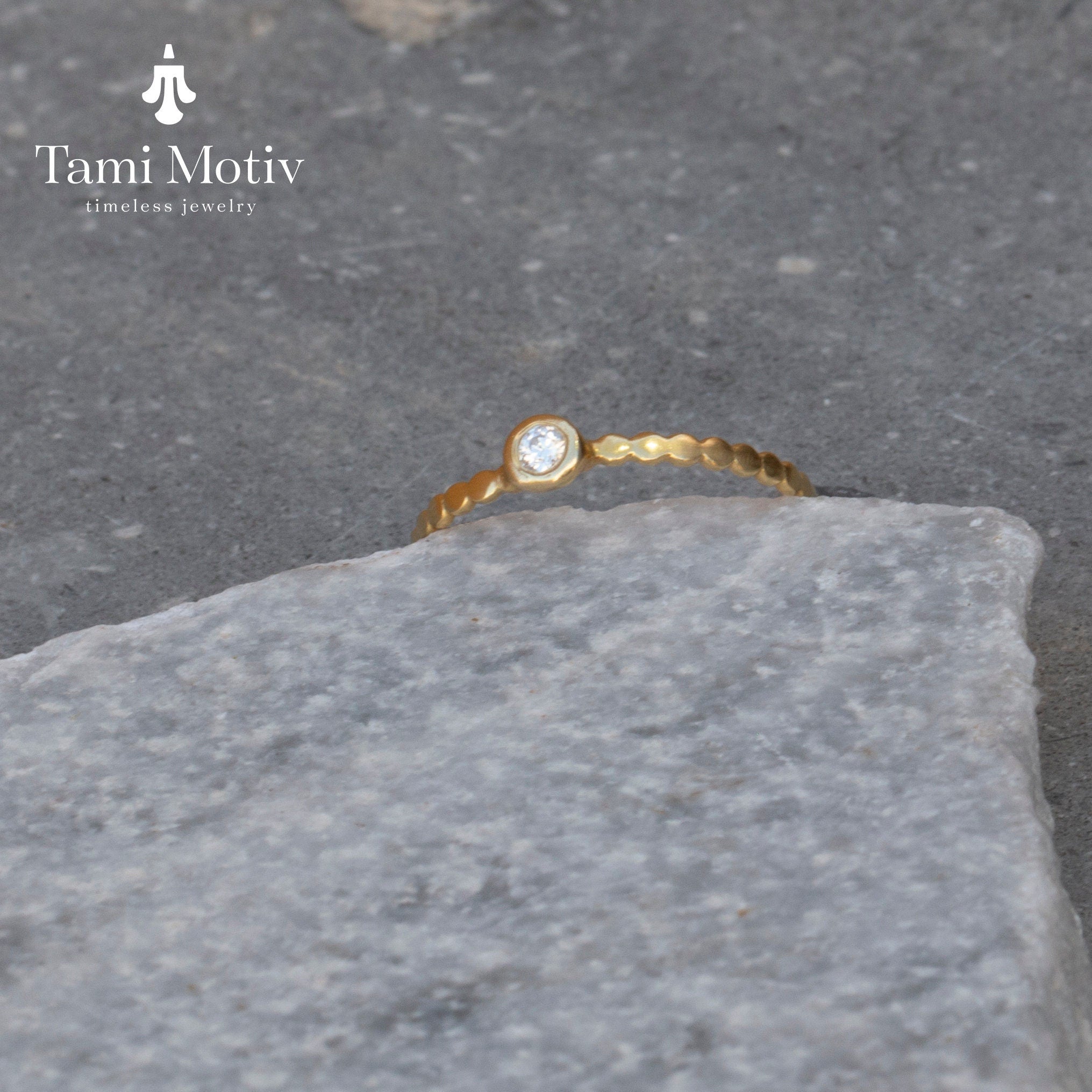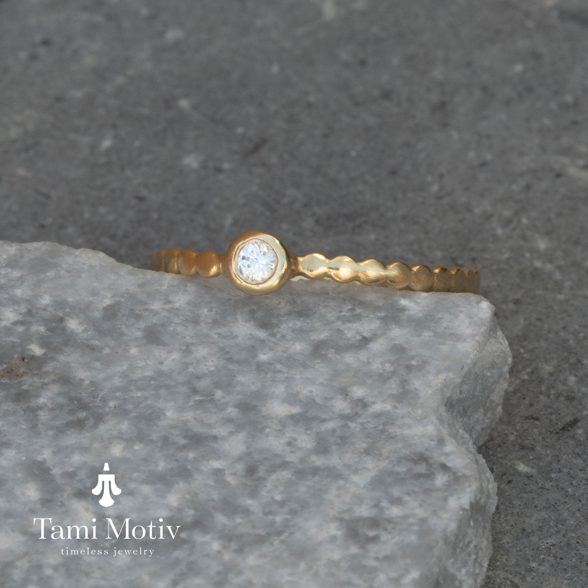 Introducing our stunning dainty gold dot ring with diamond - a timeless piece that exudes elegance and sophistication. Crafted from high-quality, shimmering gold, this delicate ring features a single sparkling diamond that glistens with every movement. Perfect for adding a touch of luxury to your everyday ensemble or as a special gift for someone dear, this ring is a must-have addition to any jewelry collection. Elevate your style with this beautifully crafted piece that combines classic design with modern flair.