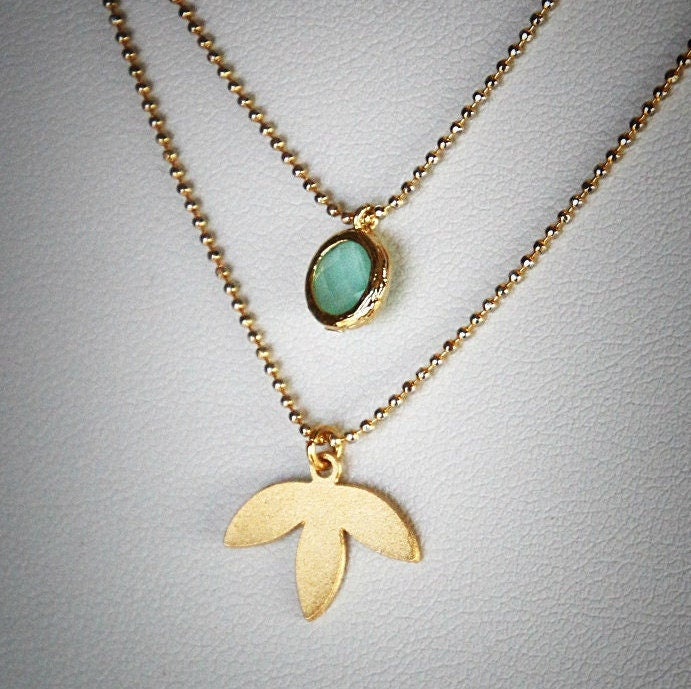 Materials: ball chain, delicate small chain, green mint round charm, lotus gendant, lotus charm, two strands necklace, short chain, framed glass charm, short necklaces, multy strand necklaces, multy strand necklace, gold chain necklace, gold plated short necklace.