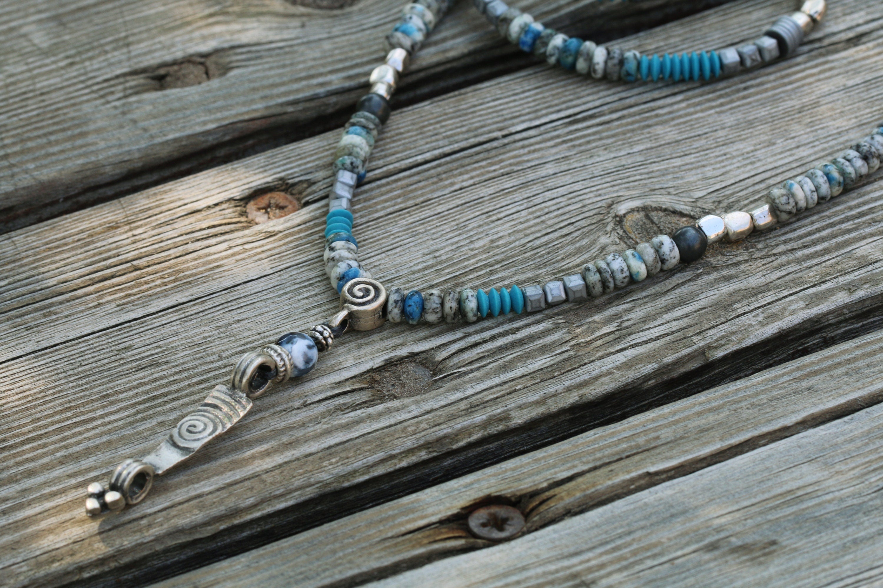 Materials: hematite, silver plated beads, howlite.