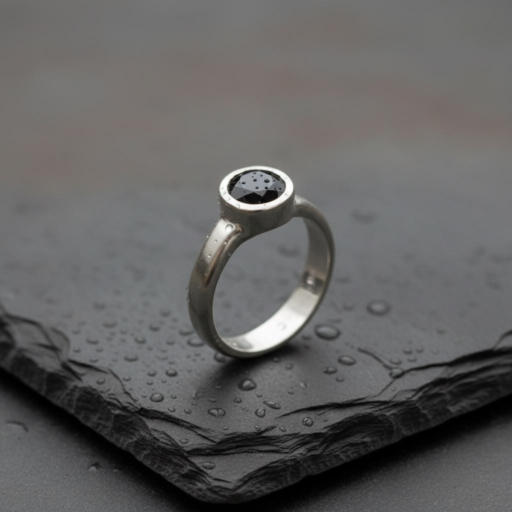 Materials: Solitaire Ring, Handmade Jewelry, Sterling Silver, 925 Silver, Black Onyx, Faceted Gemstone, Solitaire Setting, Handmade Ring, Silver Statement Natural Stone, Polished Silver, Artisan Jewelry, Unisex Design, Protection Stone.