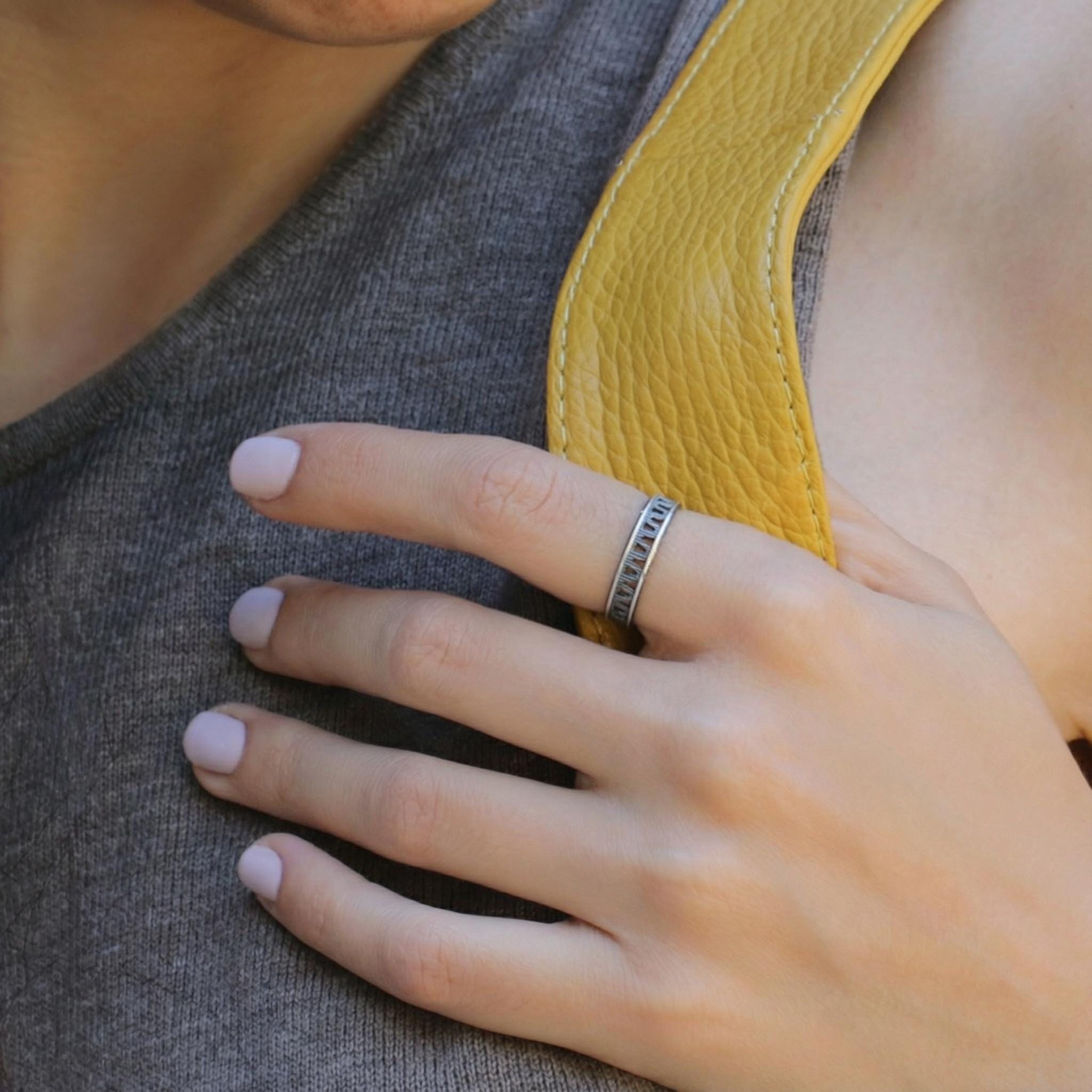 Handcrafted in solid sterling silver and carefully oxidized by hand, this ring highlights every geometric detail while keeping a lightweight, comfortable feel. Its sculptural yet minimal design makes it perfect for everyday wear, especially for those drawn to contemporary, edgy, or slightly gothic-inspired jewelry with an artisanal soul.