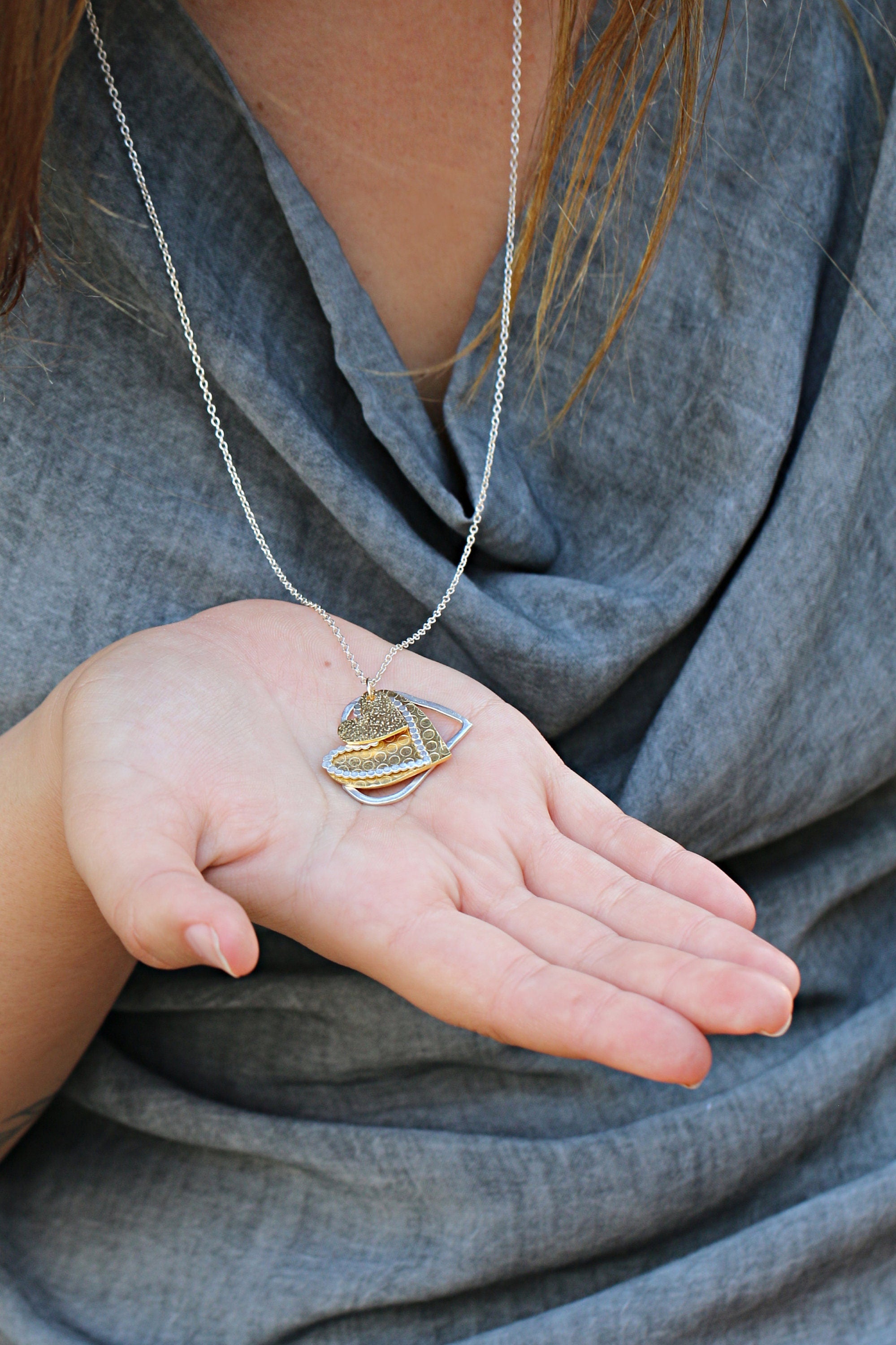Add some elegant glamour to your ensembles with this ring and two-tone necklace heart jewelry set. You can experiment with your style wearing the ring or the heart pendant necklace for women, or wearing them together. A romantic finishing touches to your look or a dazzling gift jewelry set you can give to somebody you love.