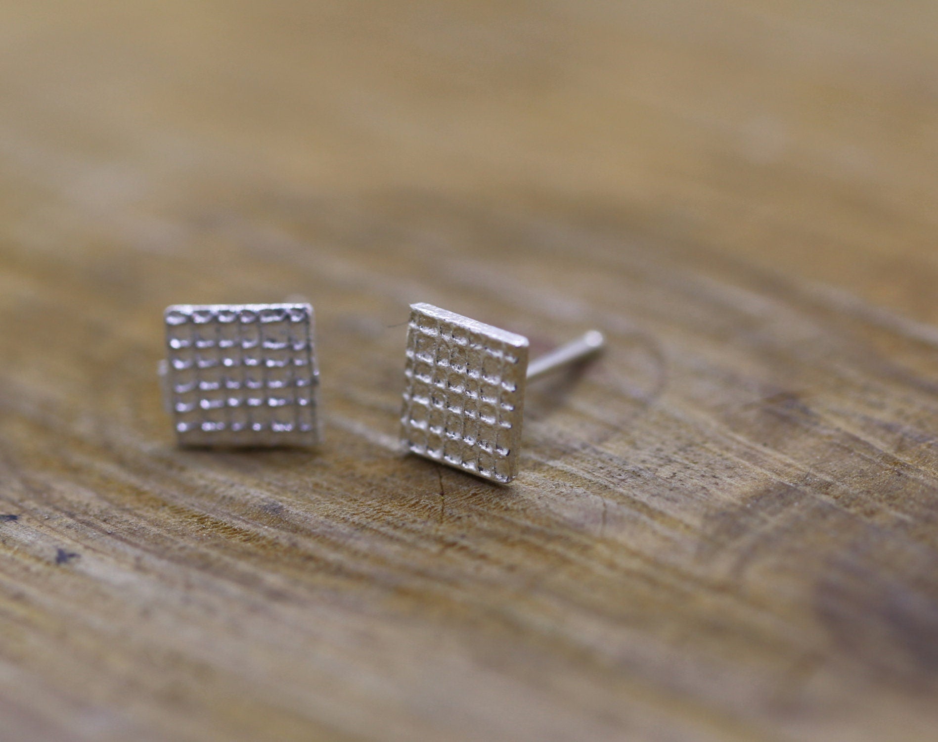 These fun, geometric earrings will fit any style, occasion or personality. They will easily become your favorite jewelry piece. The textured square stud along with the delicate floral design will compliment any woman of any age.