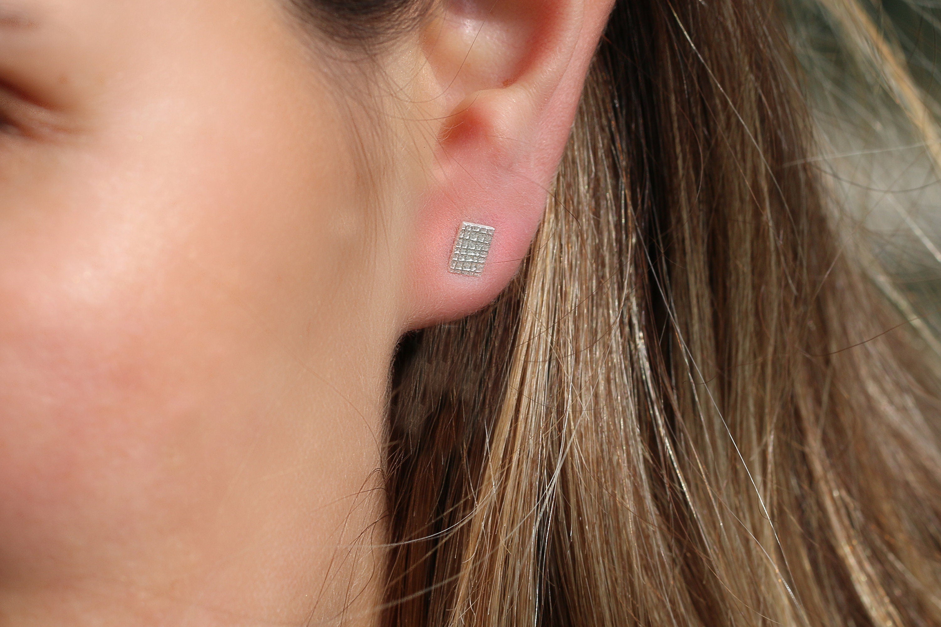 Simple and elegant, these silver stud earrings are made with a unique design. The geometric pattern on these earrings is crafted by hand. A pair of minimalist earrings for women or teens can be worn as casual or formal jewelry.