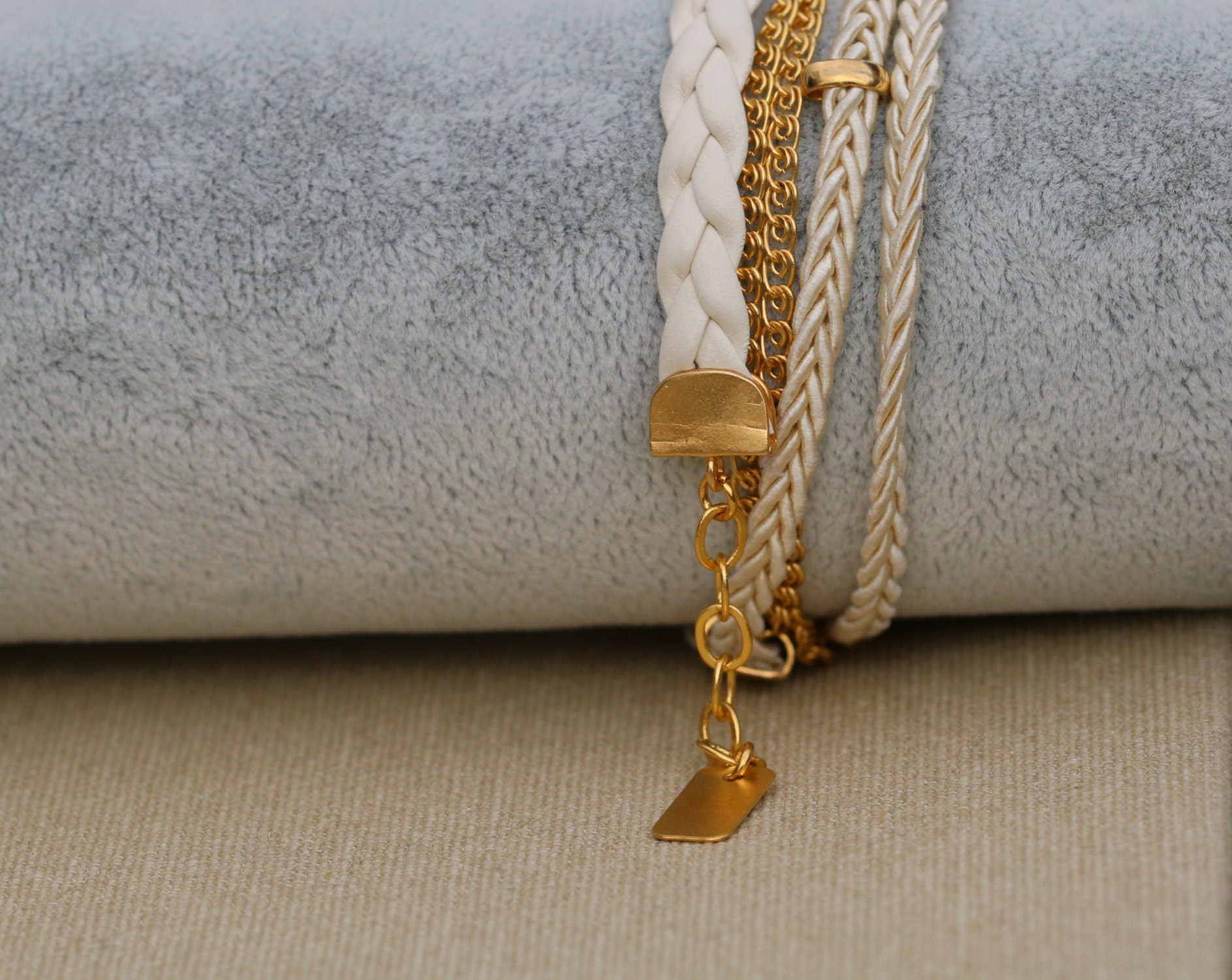 Enjoy wearing the fine beauty of this wrap bracelet made with green, leather braid and gold details. Charming combination of these elements make this piece a beautiful highlight to your ensembles. Wear with other gold jewelry for that extra pizzazz that might come in handy for any occasion