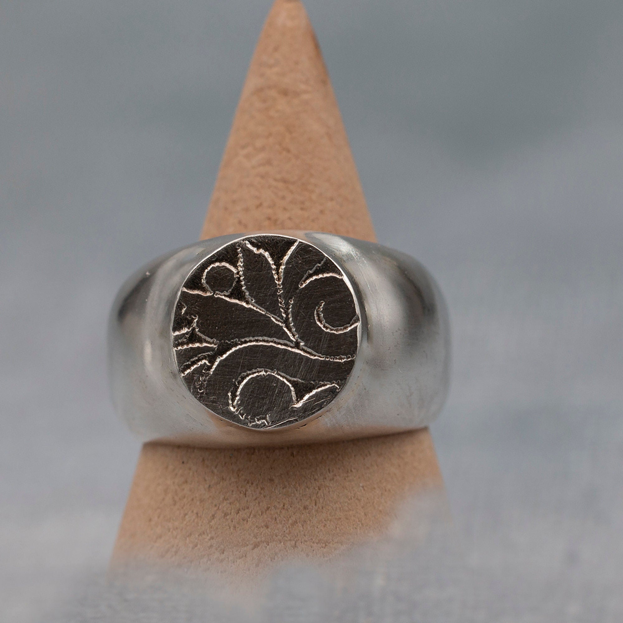 A sensational signet engraved ring with a mesmerizing design to wow you or a loved one. This gold ring is a perfect statement addition to your fashionable stack or unique gift for women. Exquisitely crafted to beautifully combine intricacy and texture in one piece.