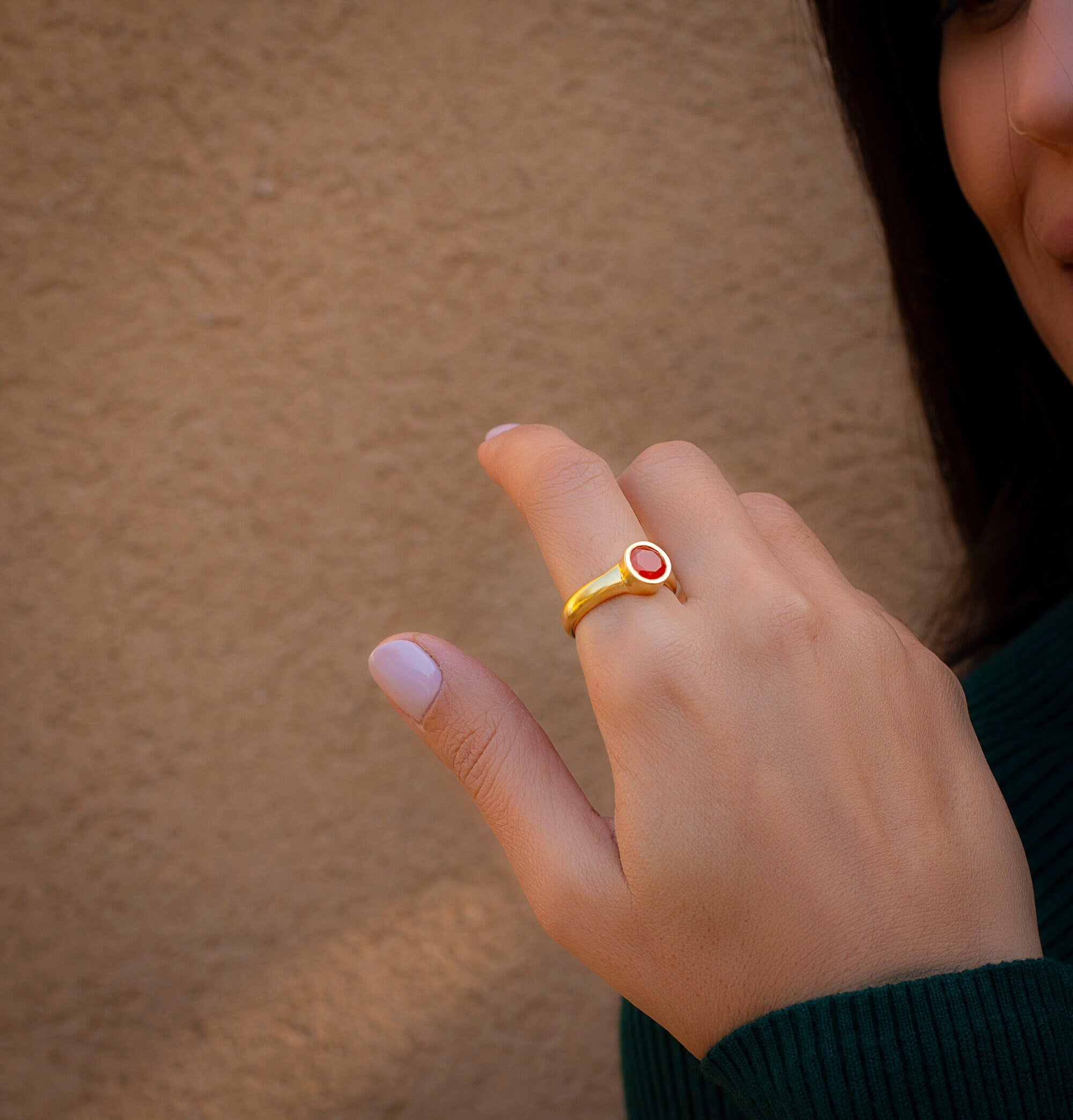 The fiery orange-red hue of carnelian radiates vitality, passion, and confidence, making this ring a meaningful symbol of strength and creativity. Its clean, minimalist design makes it easy to wear daily โ yet striking enough to stand out as a statement piece.
