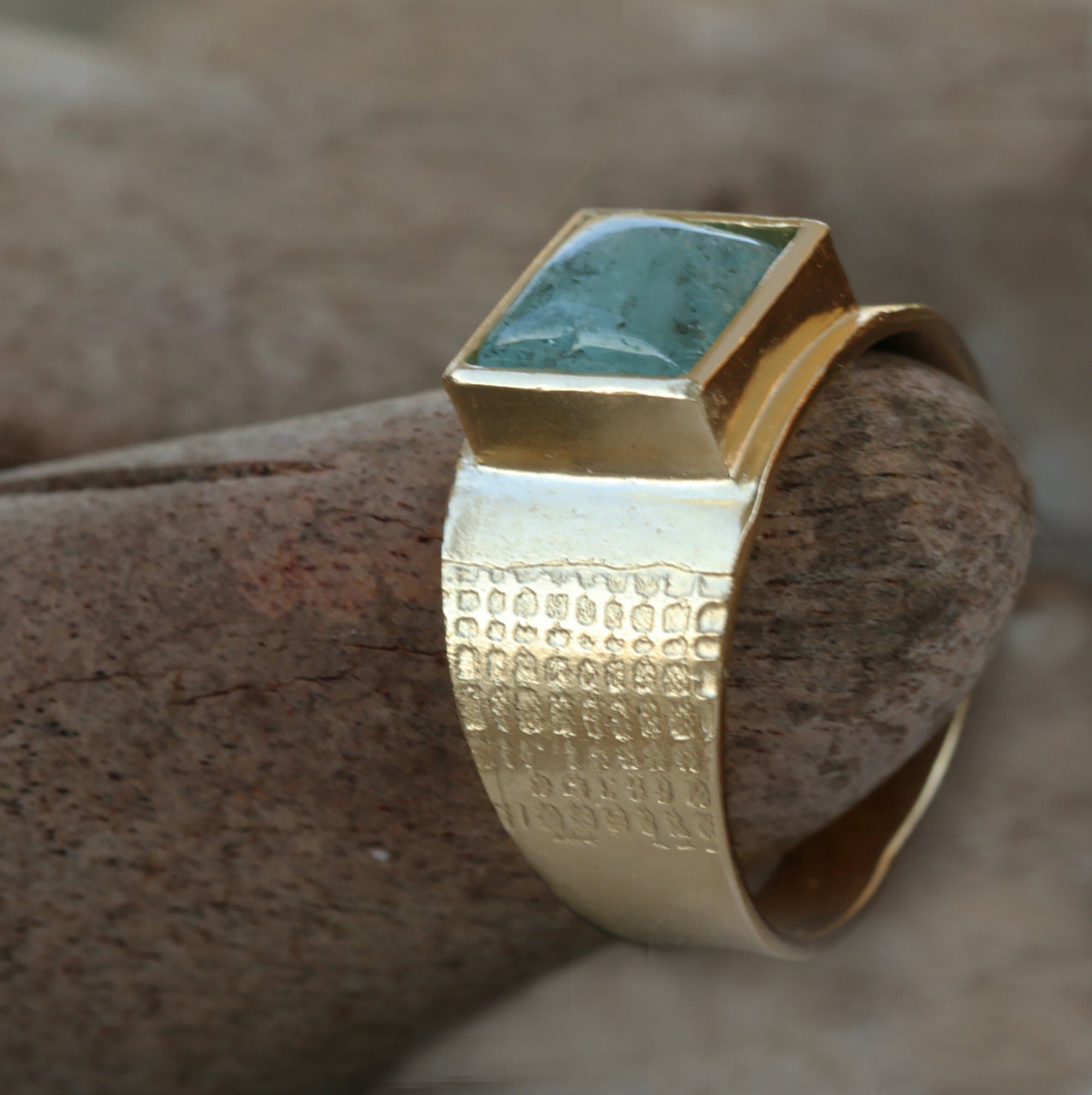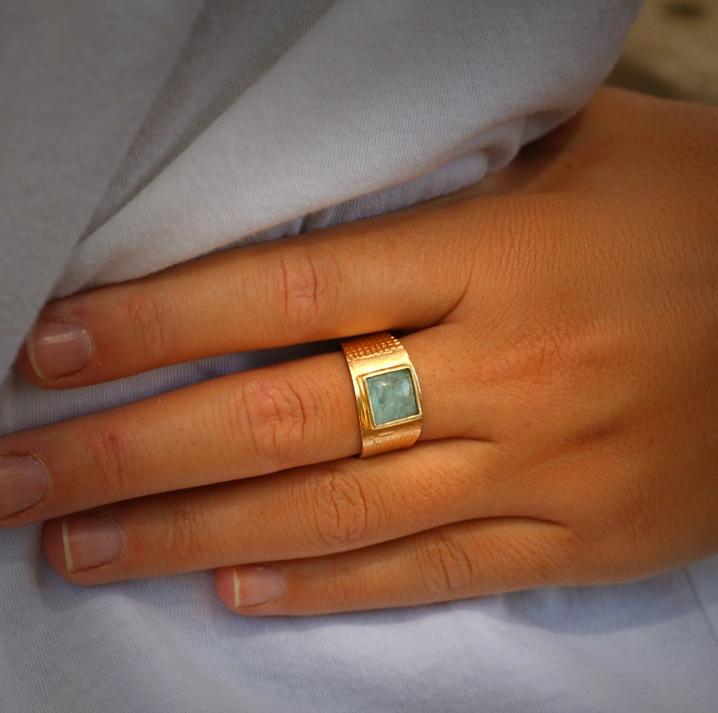 Materials: brass, Brass plated with gold, 24 gold ring, goldfilled, 14k gold, aquamarine stone, square game stone.