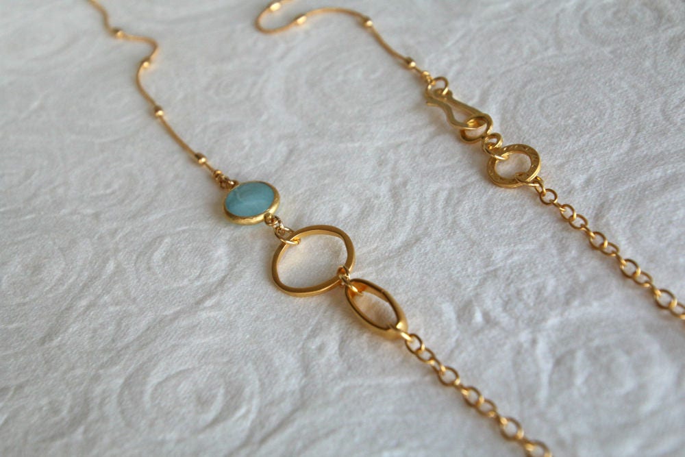 Materials: Stone, Gold Rings, Rings Pendant, jade stone, Blue Jade Stone, stone pendant, circle pendant, double circle pendant, gemstone studed with gold, gold elements, jade pendant, gold necklace.