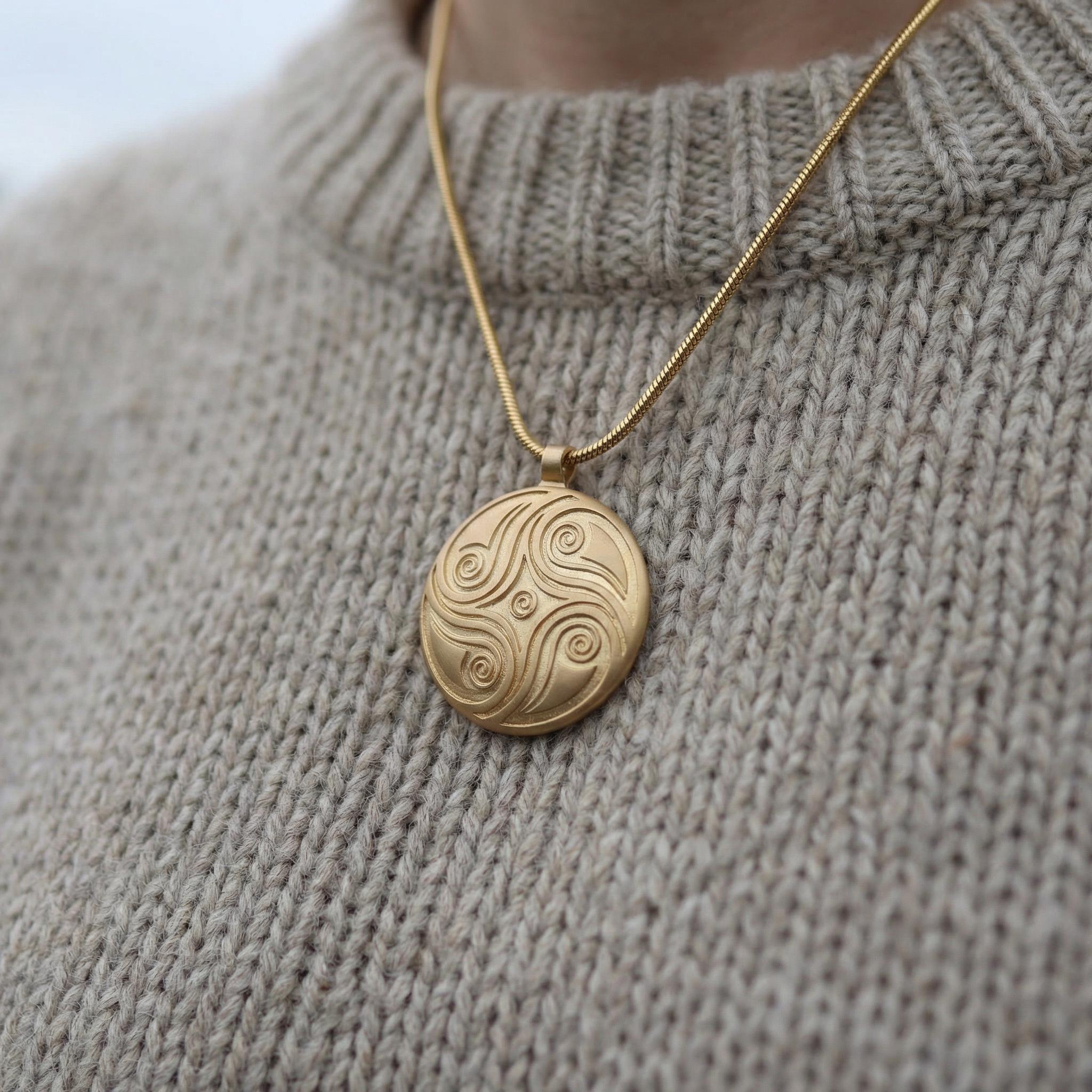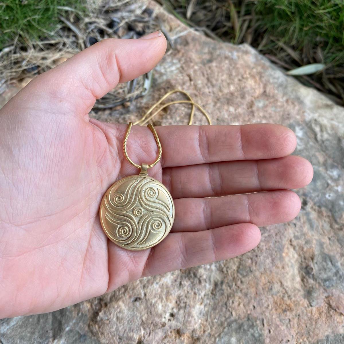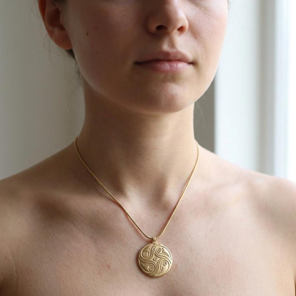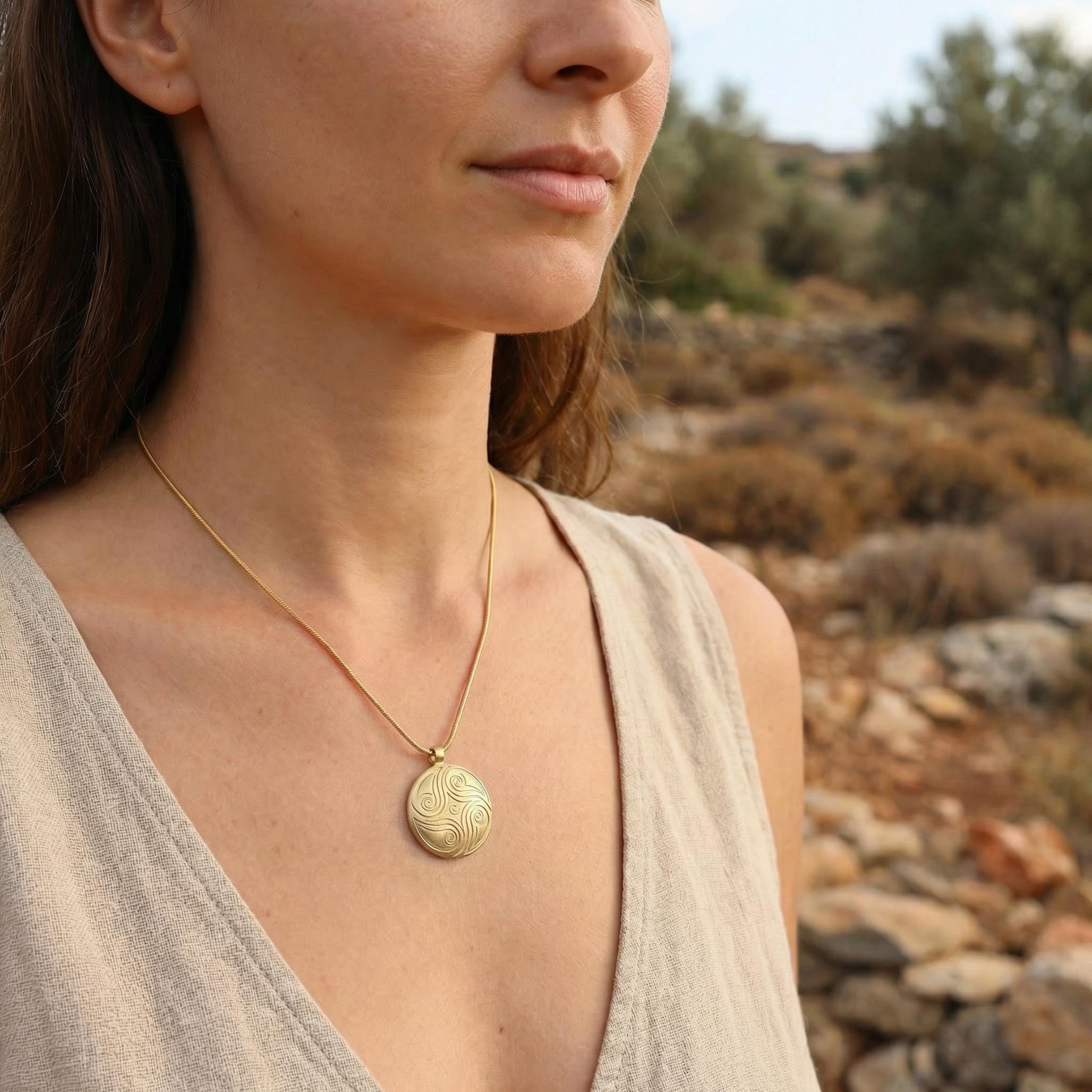 The spirals on the front symbolize the natural flow of life, growth, and the quiet movement of nature. But the deeper meaning of this necklace is hidden on the back.