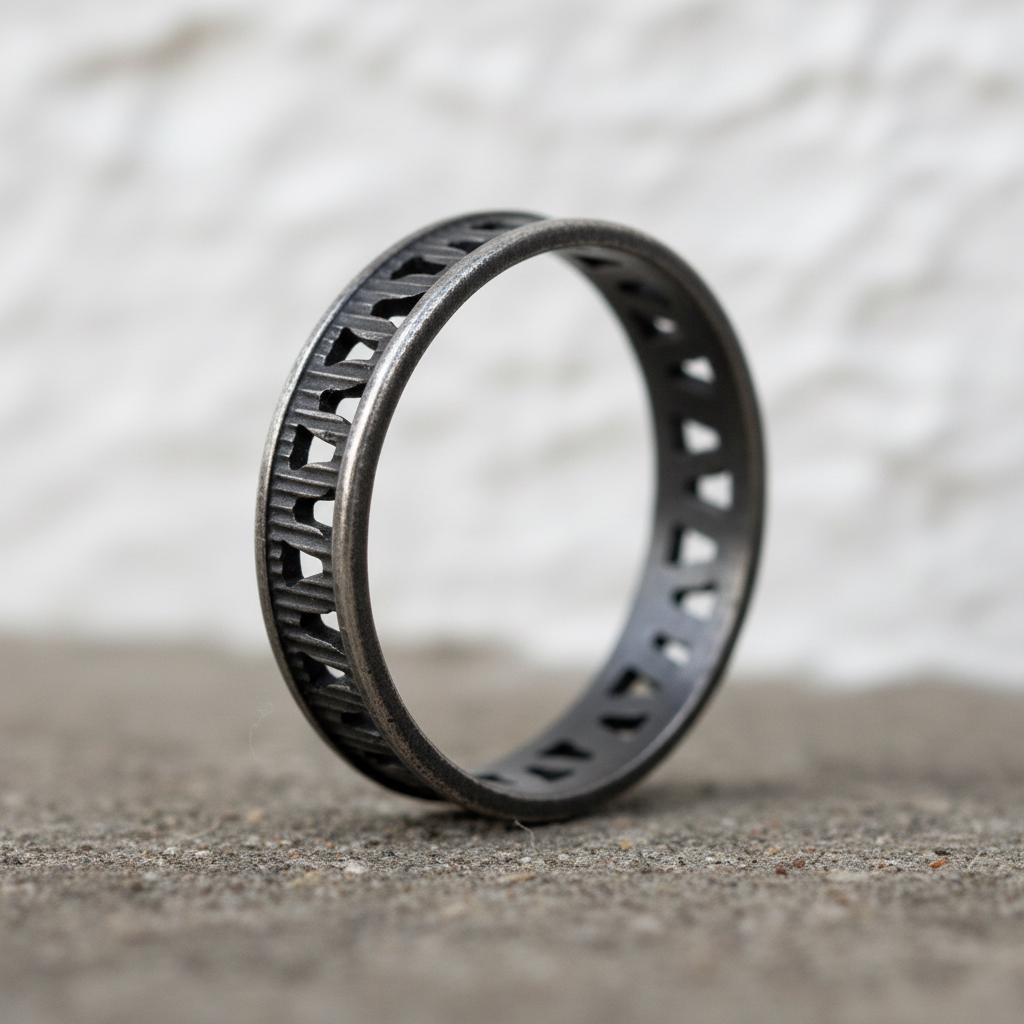 Handcrafted in solid sterling silver and carefully oxidized by hand, this ring highlights every geometric detail while keeping a lightweight, comfortable feel. Its sculptural yet minimal design makes it perfect for everyday wear, especially for those drawn to contemporary, edgy, or slightly gothic-inspired jewelry with an artisanal soul.
